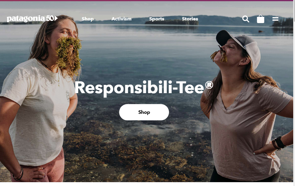 파타고니아는 이미 널리 알려진 아웃도어 브랜드로, 친환경 패션의 선두주자라고 할 수 있다. 올 해 50주년을 맞이한 파타고니아는 이번 시즌 제품 원단 중 87%는 유기농 면, 플라스틱, 폐그물 재활용 소재 등 친환경 소재로 만들었다고 밝혔다. 파타고니아는 리사이클 소재 사용뿐 아니라 근본적인 해결을 위해 2025년까지 원유에서 추출한 원사를 제품 생산 및 공급에 전면 사용하지 않는 것을 목표로 하고 있다. 또한 오래 입을 수 있는 제품을 만들고자 하며, 닳고 헤진 제품을 무상으로 수선해 주는 원웨어 서비스를 제공하고 있다.